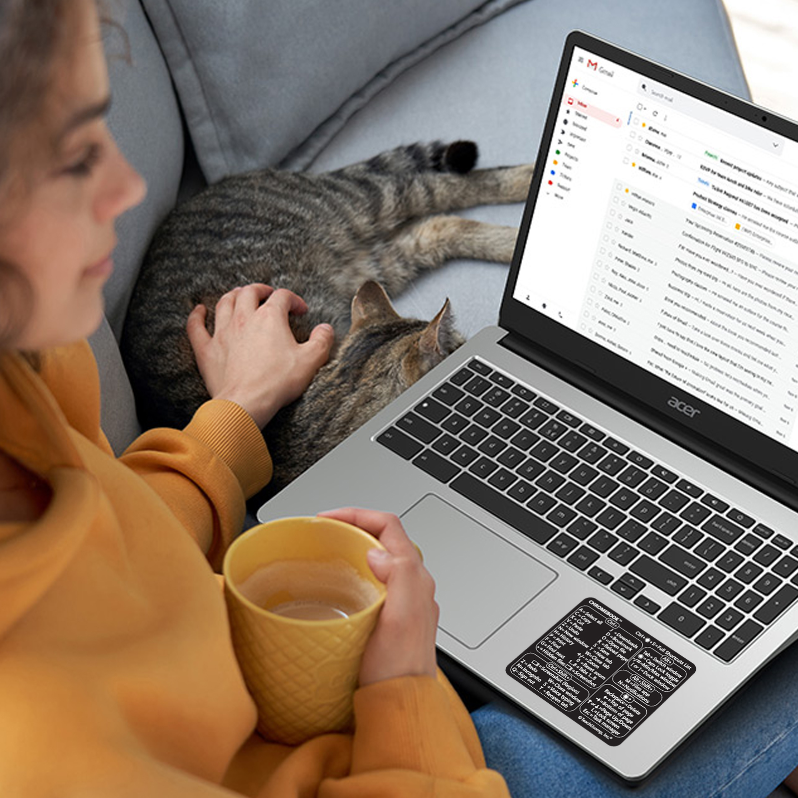 When you need to know a Chrome OS keyboard shortcut on your Chromebook, you’ll find it right at your fingertips with our Chrome OS for Chromebooks keyboard shortcuts laptop sticker. This professionally designed sticker contains the most essential keyboard shortcuts to save time and increase productivity. Our keyboard shortcuts stickers are scratch-resistant, waterproof, and won’t leave a residue if you decide to remove them later.
